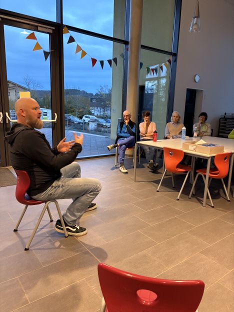 Wir erfuhren von Roland anschaulich den Aufbau des Kniegelenks, das Zusammenspiel von Muskeln, Sehnen und Bändern sowie die Bedeutung der Muskelketten für Stabilität und Beweglichkeit. Außerdem sprach er über typische Abnutzungserscheinungen, häufige Verletzungen im Alltag und beim Sport und wie wir ihnen vorbeugen können.